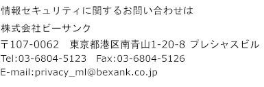 株式会社ビーサンクは、個人情報の漏洩、滅失またはき損の防止その他の個人情報の安全管理が図られるよう、情報セキュリティ基本方針および情報セキュリティポリシーを掲げ、情報セキュリティ委員会を設置し、従業員に対する必要かつ適切な監督を行います。